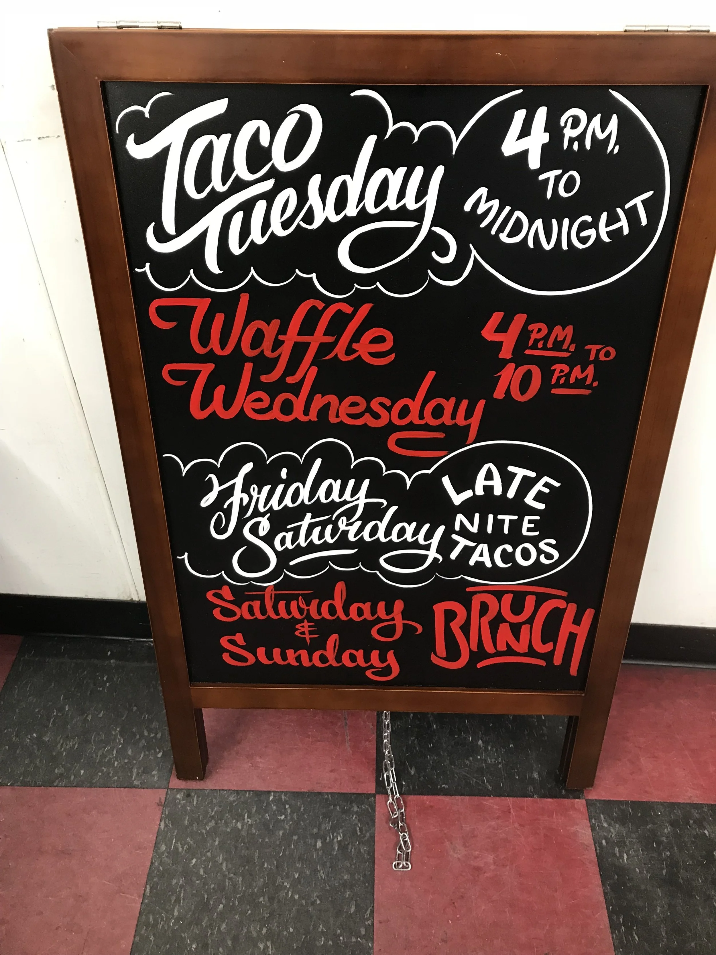 The handpainted sign brings a classic, unique flair to a space or business. In order to stand out it makes sense to have custom signage designed and painted for your space The craftmanship gives an effect that cannot easily be duplicated by computers.